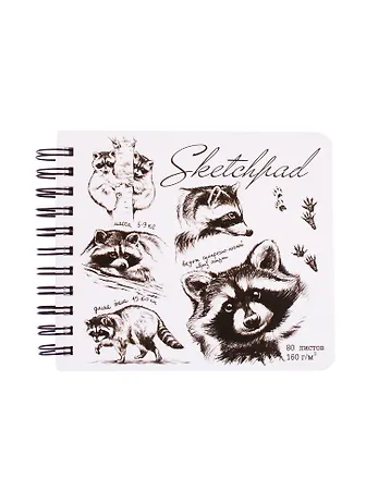 Скетчбук 155*180 80л "Енот" белый офсет, 160г/м2, тв.обложка, широкая евроспираль