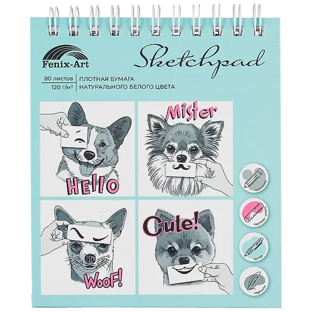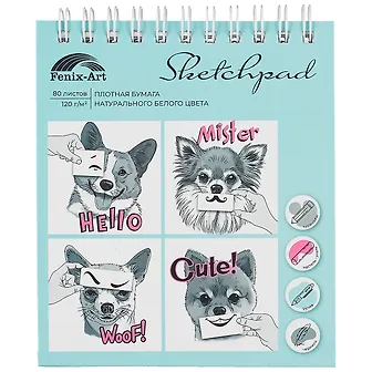 Скетчбук 155*180 80л "Забавные щенки" белый офсет, 120г/м2, спираль