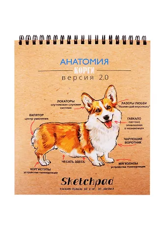 Очень красивый и милый скетчбук с прелестной собачкой-корги на обложке. Внутри хорошая крафт бумага, подходящая для реализации различных творческих идей. Размер удобен для того, чтобы брать скетчбук с собой, поместится в любую сумку. Бумага довольно прочная и приятная на ощупь, фактурненькая