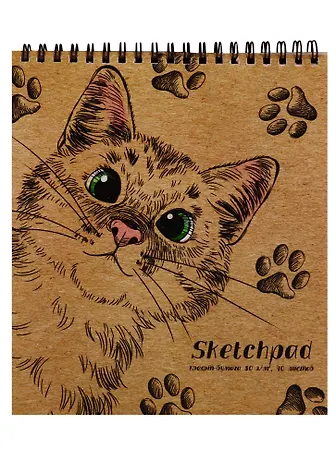 Скетчбук 168*195 40л "Котик" крафт бумага 80г/м2, карт.обл., тв.подложка, пружина