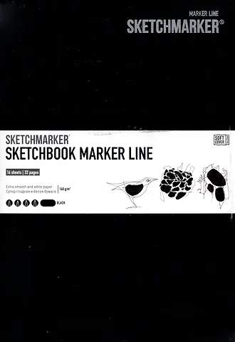 Скетчбук 17,6*25см 16л "SKETCHMARKER MARKER LINE", 160г/м2, мягк.обложка, цв.цв.черный
