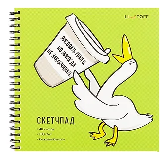 Бюджетный скетчбук, листы с желтоватым оттенком, по плотности тоже не очень понравились, тонковаты. Обложка хорошая, плотная, с ярким красивым современным рисунком. Листы скетчбука удобно скреплены с помощью спирали. Формат скетчуба не большой, к тому же по весу не тяжелый, поэтому его и купила, мне нравится брать его с собой и в нужный момент всегда сделать зарисовку.