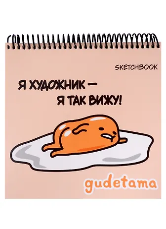 Скетчбук 190*190 48л "Гудетама", жесткая подложка, гребень, блок 90г/м2
