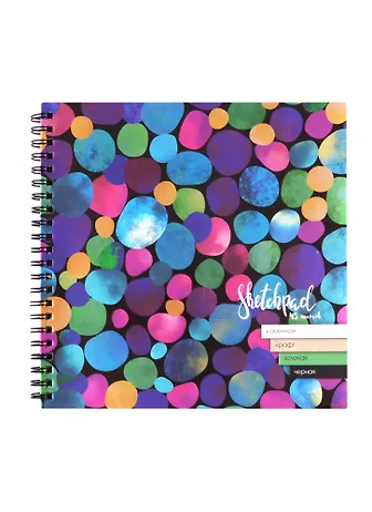 Скетчбук 195*195 45л "Коты и цветные круги" бел. каменная, черная, серая, зеленая, 120 г/м2, 245 г/м2, 80 г/м2, карт.обл., гребень