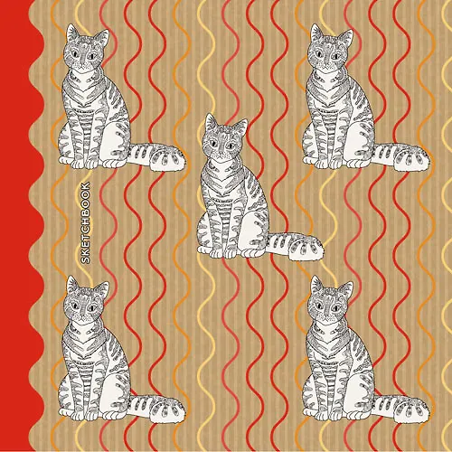 Скетчбук 195*195, 80л. Полосатые кошки (графика), 7Б крафт-бумага., сшитый блок