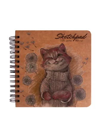 Скетчбук 200*200 120л "Игривый котенок" крафт бумага 80г/м2, карт.обл., тв.подложка, гребень