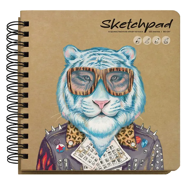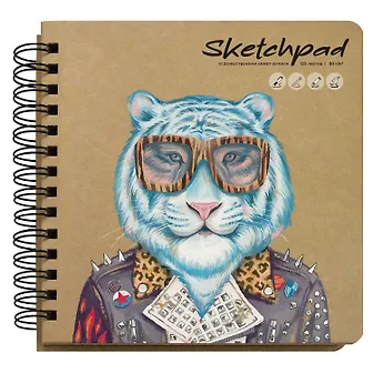 Скетчбук 200*200 120л "МОДНЫЙ ТИГР" крафт