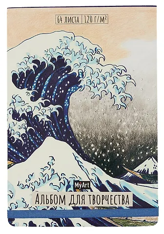 Скетчбук 205*300 64л "БОЛЬШАЯ ВОЛНА В КАНАГАВЕ" белый офсет, 120г/м2, твердая обложка, резинка