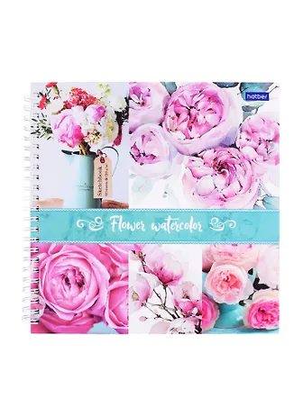 Скетчбук 210*210 60л "Цветочная акварель" 120г/м2, тв. обложка, широкая евроспираль