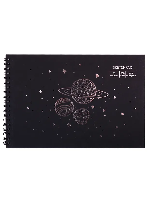 Прежде всего, привлёк внимание дизайн. Приятная на ощупь и немаркая матовая обложка, романтичный рисунок, тиснение фольгой – свет красиво играет, звёзды и планеты переливаются серебром. Размер удобный, достаточно компактный, но не слишком маленький. Можно носить с собой и делать наброски с комфортом, не жалея места на странице.