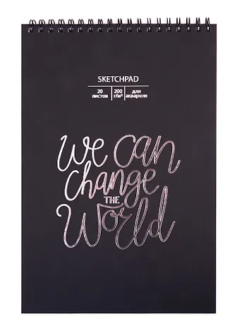 Скетчбук 250*170 20л "We can change" акварельн., с перф., 200г/м2, обл картон, тисн. фольг., широкая евроспираль