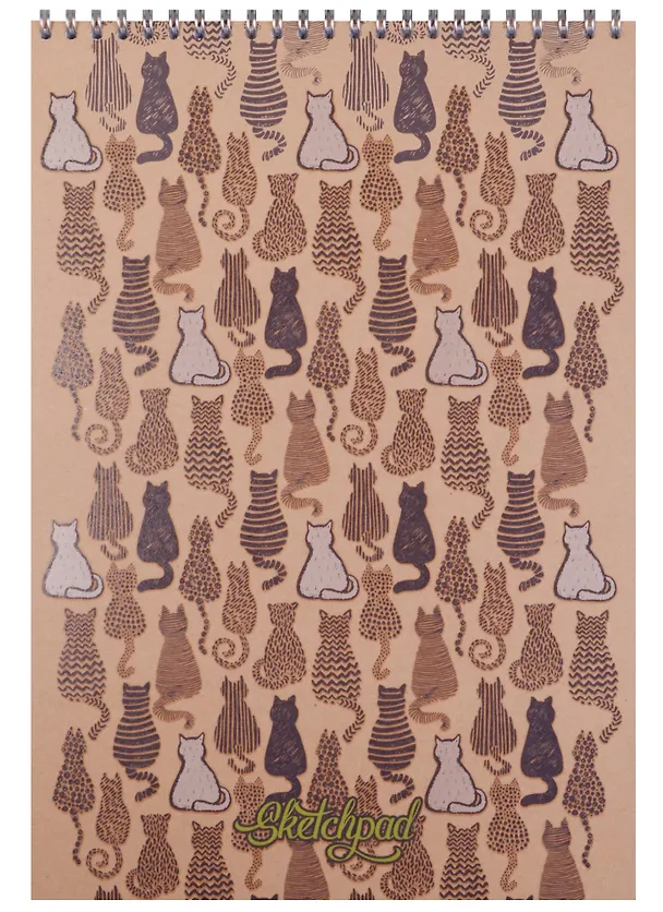 Скетчпад А4 (210х290), 40л.7БЦ, евроспир..Обл.: крафт картон, выб.лак. жестк. подл. Бум.120 г/м2. Крепл. линов. Котики. СПСЛ4006