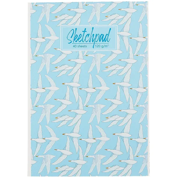 Скетчбук пришел без повреждений, тактильно и визуально приятная обложка. Имеется твердая подложка, удобно делать зарисовки. Бумага белая без фактуры, плотностью 120г/м, отлично походит для скетчинга карандашом, ручками/чернилами. Акварель не выдержит, если только в один слой, зато неплохо выдерживает гуашь, если не использовать много воды.