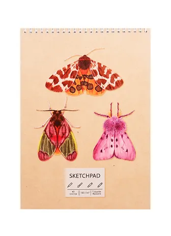 Скетчбук А4 40л "Ярки мотыльки", 120г/м2, обложка крафт картон, евроспираль