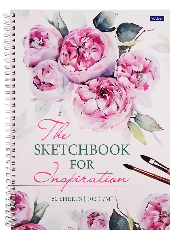 Скетчбук А4 50л "Акварельный букет" белый офсет, 100г/м2, тв.обложка, спираль