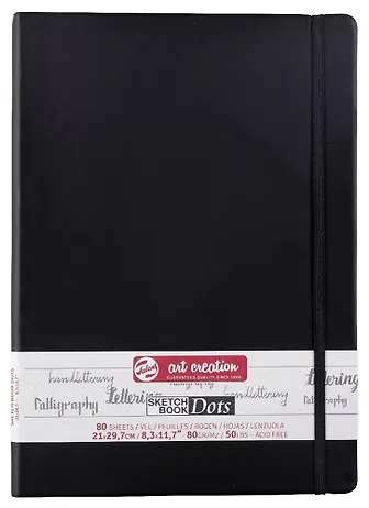 Скетчбук Talens Art Creation Dots отличается точечной разметкой на листах, благодаря чему может использоваться как ежедневник Bullet Journal (системы планирования и заметок).