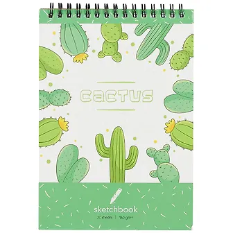Скетчбук А5 30л "Кактусомания" 160г/м2, тв. обложка, спираль