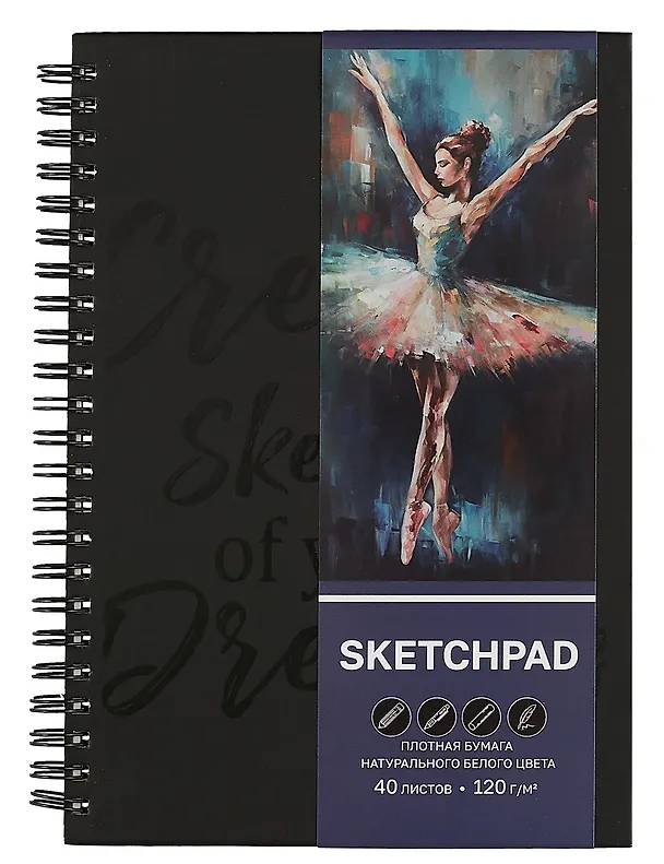Скечбук хорошего качества за отличную цену. Пришел упакованным в пленку, обложка картонная (единственное, что было бы супер, если бы со стороны пружин тоже было прекращено черным, а то лично меня немного смущает). Листы хорошие, рисовать на них очень приятно. Можно использовать любые материалы (кроме маркеров) без опасений
