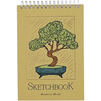 Скетчпад 40л евроспираль А5 , обложка тонированный картон, тиснение фольгой, блок 160г, микроперфорация листов, твердая подложка. Бонсай, Seventeen