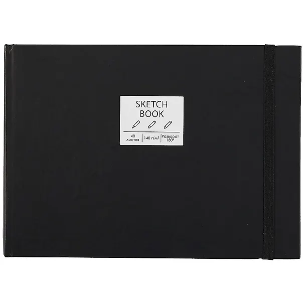 Скетчбук А5 40л "Free hand. No. 2" черный, гладкая бумага, 140г/м2, тв.обложка, резинка