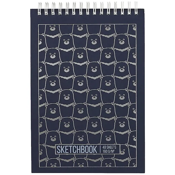 Скетчбук хороший, понравился. Листы плотные, но профессиональные маркеры немного отпечатываются на втором листе при рисовании. Этого и следовало ожидать, потому что бумага нужна другая. Отлично подойдёт для карандаша. Лицевая обложка достаточно плотная, цвет тёмно-синий с серебристыми мишками. Последний лист это картон, благодаря которому можно рисовать, не имея ровной и жёсткой поверхности, как стол.