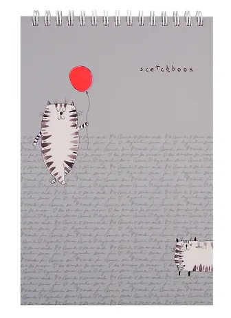 Скетчбук А5 40л "Праздничные коты" белый офсет, 100г/м2, тв.обложка, евроспираль