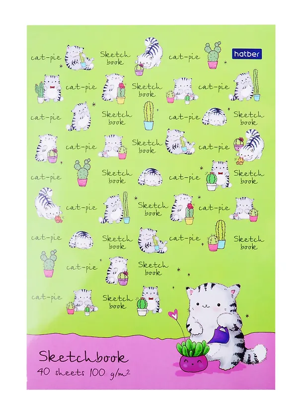 Есть какая-то волшебная притягательность в новых канцелярских товарах. Эти цветные ручки, яркие обложки блокнотов/скетчбуков, глянцевые, матовые, маркеры с сочными и манящими на творческие подвиги наконечниками, стирательные резинки/ластики, клячки - мяшки и прочее прочее. Ну как не взять в руки этот блокнотик с таким милым котиком. Это не простой кот, это кот Пирожок, он любит кактусы и с удовольствием за ними ухаживает (ну прямо как маленький принц за своей Розой) - поливает, качает на лапках, общается с ними, просто любуется. Но, конечно, как и любой котик, Пирожок любит и поиграться и поспать. Вот и целая история для творчества готова. А для воплощения под обложкой целая вклейка. Листы легко отрываются, писать и рисовать на них приятно. Рисовать можно карандашами, ручками, а вот с акварелью уже осторожней, от воды лист превращается в море и начинает волноваться.