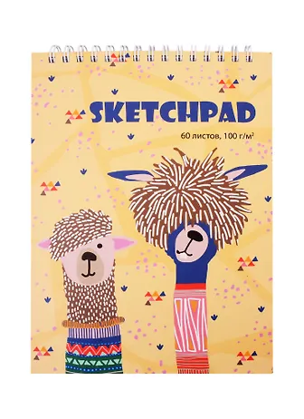 Скетчбук А5 60л "Альпаки" белый офсет, 100г/м2, тв.обложка, гребень