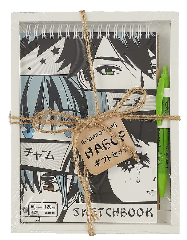 Скетчбук с ручкой в красивой подарочной упаковке смотрится стильно и презентабельно. Приобретали мальчишкам в качестве подарка в школе. Сам скетчбук и ручка самые простые, но за счет упаковки, а особенно крафтовой тесьмы смотрится здорово. Детям понравилось. Да и для заметок в школе скетчуб всегда пригодиться, тем более, что формат не маленький, как у блокнота, но и носить с собой вполне удобно.