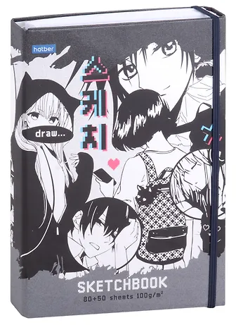 Скетчбук А5 80+50л "Аниме" 100г/м2, тв. обложка, закр. евроспираль, на резинке