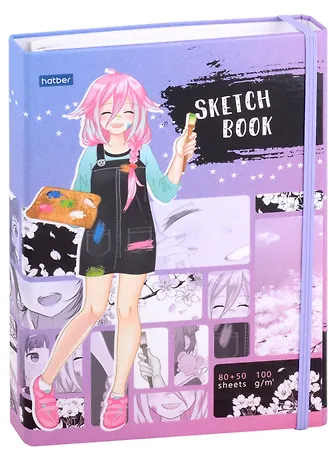 Скетчбук А5 80+50л "Девочка Манга" 100г/м2, тв. обложка, закр. евроспираль, на резинке
