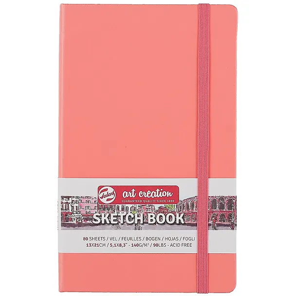 Скетчбук А5 80л "Art Creation" 140г/м2, коралл.тв.обл., резинка