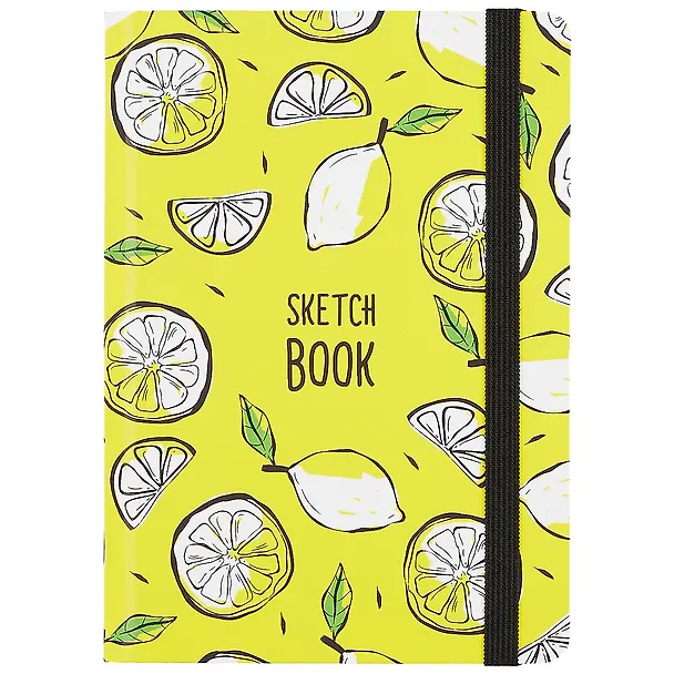 Скетчбук А5 80л "Лимоны" 70г/м2, кремовая бумага, тв. переплет, резинка