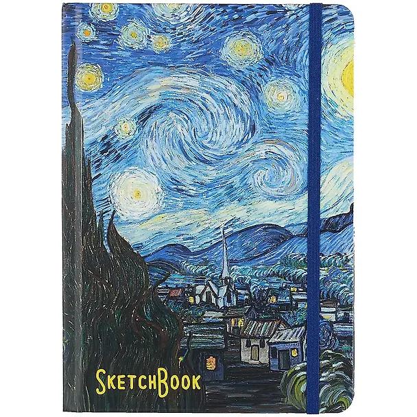 Скетчбук А5 80л "Звездная ночь. Ван Гог" 70г/м2, кремовая бумага, тв. переплет, резинка