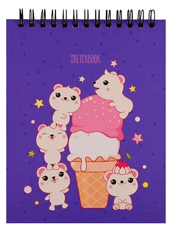 Скетчбук А6+ 125*160 40л "Милота" белый офсет, нелинованн., 100г/м2, тв.обложка, евроспираль