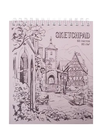 Скетчбук А6 60л Рисованный город белый офсет, 80г/м2, тв.обложка, гребень