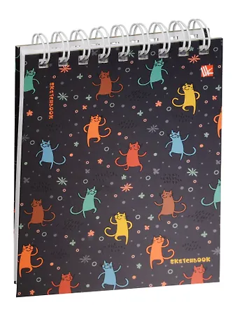 Скетчбук A6 80л "Кошачьи танцы" белый офсет, нелинованн., 100г/м2, тв.обложка, широкая евроспираль, Listoff