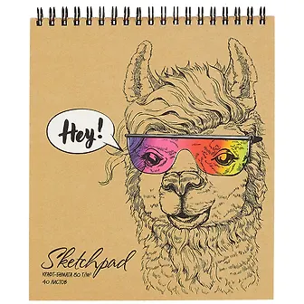 Скетчбук 168*195 40л "Альпака в очках" крафт бумага 80г/м2, карт.обл., тв.подложка, гребень