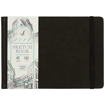 Скетчбук в премиальном исполнении с твердой обложкой из экокожи, фактура которой имеет потертый шик. Резинка предотвратит случайное раскрытие и не позволит помяться листам.