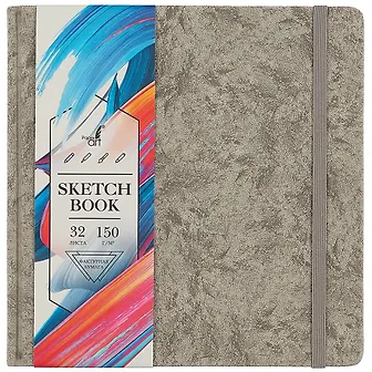 Скетчбук в премиальном исполнении с твердой обложкой из экокожи, фактура которой имеет потертый шик. Резинка предотвратит случайное раскрытие и не позволит помяться листам.