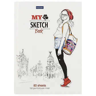 Сам скетчбук выглядит миленько и стильно, но на практике он неудобный. Страницы скреплены пружиной, но обложка прикреплена сверху и с пружиной никак не связана. Корешок большой и упругий, из-за чего открывать и закрывать скетчбук неудобно, и сама обложка не закрывается плотно. Рисовать тоже неудобно, рука свободы не чувствует. Бумага средняя, но приемлемая. Если честно, не уверена, что смогу закончить этот скетчбук. Возможно, придётся содрать обложку, чтобы она не мешалась под рукой, хотя будет жаль, она симпатичная. Но очень раздражающая.