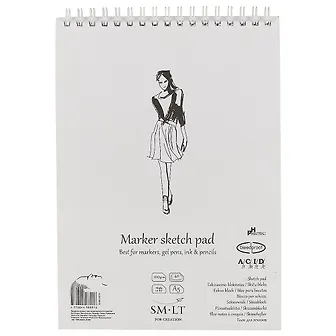 Альбом "Authentic Marker" для маркеров и гелевых ручек с белой гладкой бумагой плотностью 100 г/м2 со специальной пропиткой от протекания чернил на следующий лист. Белая картонная обложка, уплотненная подложка с обратной стороны. Внутри 40 листов с микроперфорацией. Тип крепления: спираль по короткой стороне. Бумага не содержит кислот и отбеливателей, сертифицирована FSC.