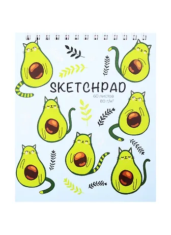 Скетчбук А6 60л "Авокадо" белый офсет, 80г/м2, тв.обложка, гребень