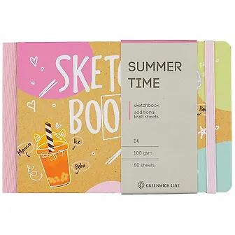 Скетчбук B6 80л "Summer time" 100г/м2, доп.листы крафт, тв. обложка, на резинке, Greenwich Line