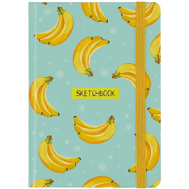 Скетчбук формата А5 "Бананы", 80 листов,плотность 70 г/м2, кремовая бумага, твердый переплет, на резинке.