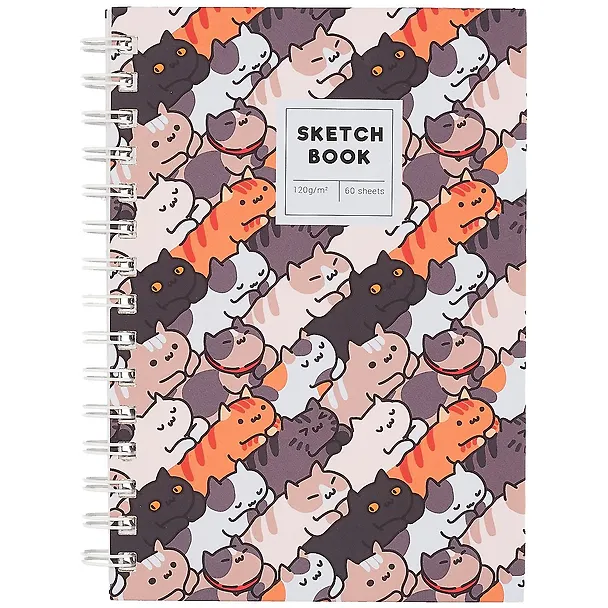 Скетчбук А5 60л "Cats" белый офсет, 120г/м2, обложка Soft Touch, широкая евроспираль