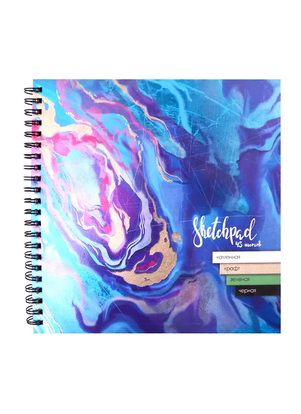 Скетчбук 195*195 45л "Цветная фактура" бел. каменная, черная, серая, зеленая бумага 120 г/м2, 245 г/м2, 80 г/м2, карт.обл., гребень