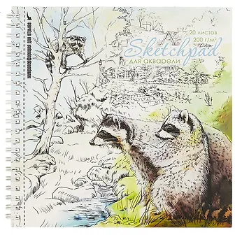 Скетчбук 195*195 20л "Еноты" акварельная, 200г/м2, обложка картон, гребень