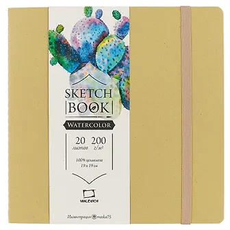 Скетчбук для акварели «Waterfall Nature», оливковый, 20 листов, 19 х 19 см