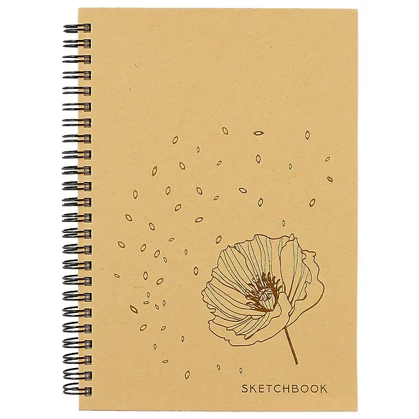 Скетчбук А5, 80л. 7Б, крафт - бумага, тисн. фольгой "Золото". Широкая евроспир. по длинной стор.Форз.-крафт без печ.Бум. тонир. "слон. кость" 100гр/м2,Хрупкий цветок,СКСФ5804627